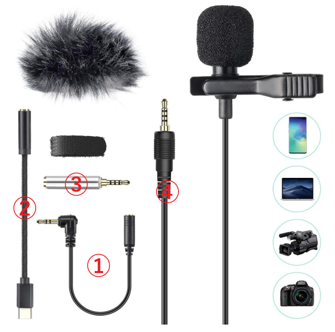 私(管理人)がAGPTEK ピンマイク(AGPTEK社のピンマイク)を使っていたのはイヤホンジャック経由でした。パソコンの丸い穴の接続のところです。トップ画像の①コンピュータ&カメラアダプタケーブルで接続していました。