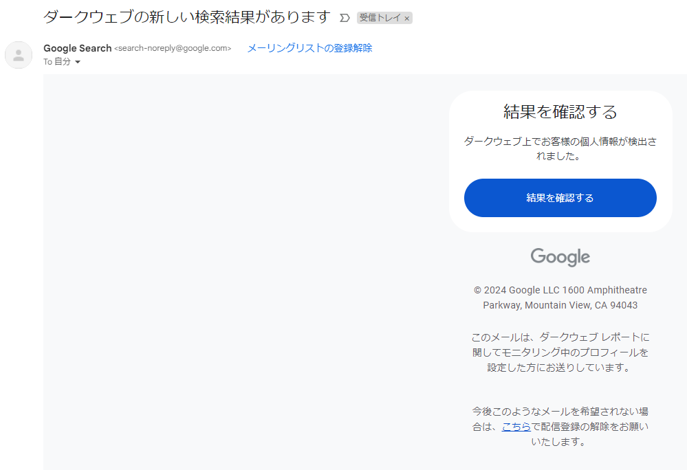 全然名誉なことではでないですが、噂のGoogleダークウェブリポートから連絡(上掲email通知)が来てしまいました。