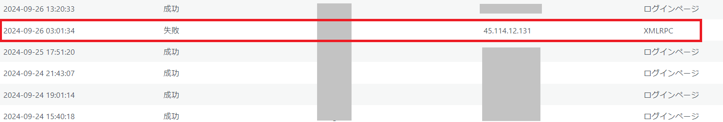 最近XMLRPC接続によって不正ログインが試みられた