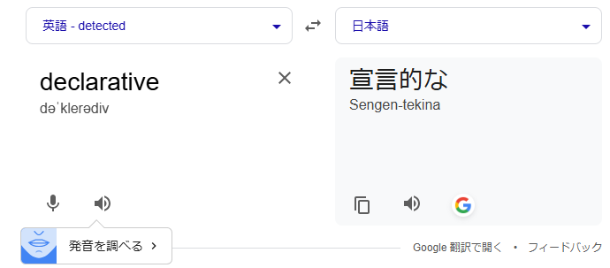 日本語表記するとディクレレティヴという感じです。これが日本人の口に合わない。