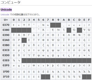 ギリシア語のUnicodeについては、Wikipediaにまとめられています。
