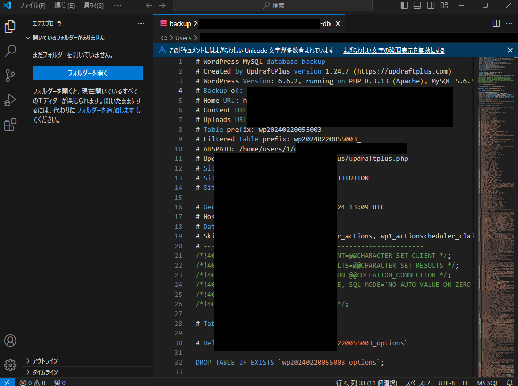 Visual Studio Code(VSCode)を使おうが、Notepad++を使おうが、サイトの心臓部にあるdbファイルのデータを大幅に書き換えることになります。