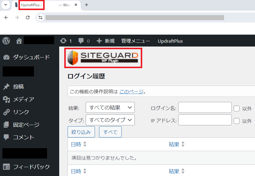 SiteGuardプラグインの画面なのに