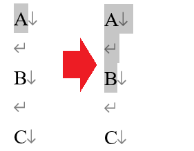 しかしその変更は、しかし上掲画像の左90度に曲がっている矢印(いわゆる段落変え)までしか適用されません。